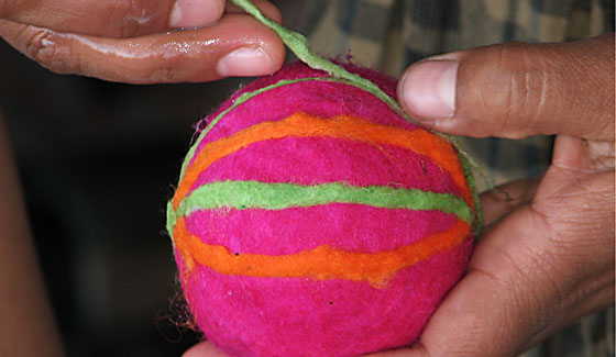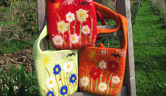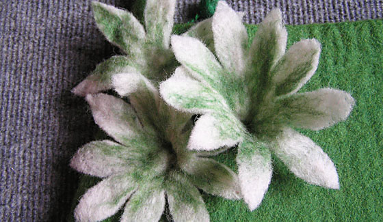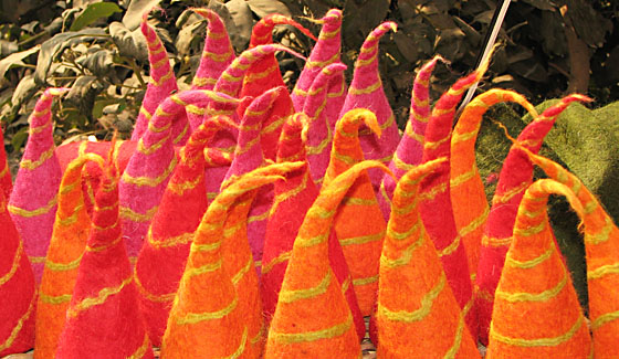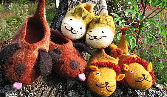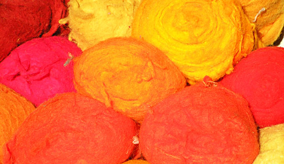 Unser gesamtes Sortiment wird im Nassfilzverfahren hergestellt. Dabei findet Schafwolle, zum Teil Merinowolle aus Neuseeland, Verwendung.